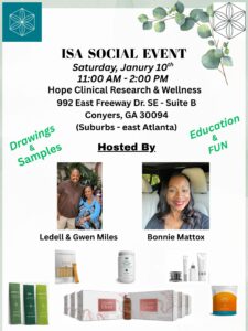 Join Us for the ISA Social Event where you’ll experience Health and Wellness Education, Isagenix Product Samples, Product Testimonials, Drawings and lots of FUN. Just swing by anytime during the event time. Don’t forget to bring your guest because all new enrollments will receive an additional 25% off their initial order.
