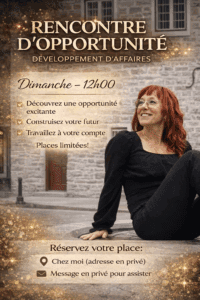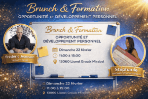 Vous êtes cordialement invités à un Brunch & Formation sur l’opportunité et le développement personnel ! Animé par Frédéric Jeanson (Legacy Club) et Stéphanie Perreault (Directrice Exécutive 8 Étoiles), nous vous guiderons à travers vos objectifs 2026, comment les atteindre, répondre aux objections clients et enrichir votre développement personnel. Rendez-vous le dimanche 22 février de 11 h à 15 h, au 13060 Lionel-Groulx, Mirabel. Une opportunité à ne pas manquer pour allier brunch et ambition!