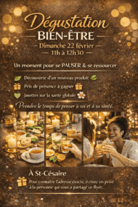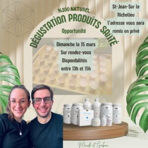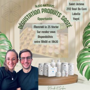 Nous vous invitons en magasin à une dégustation et présentation de produits naturels axés sur l’amélioration de la santé globale. Découvrez l’opportunité derrière ces produits de qualité.