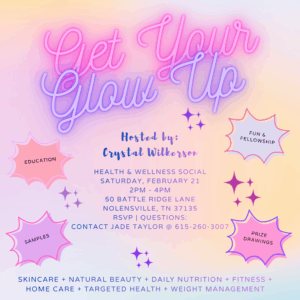“Get Your Glow Up” at our Health & Wellness Taste & Learn. Join us for a fun, relaxed event where you will have an opportunity to sample wellness solutions, learn strategies for a healthy lifestyle, and discover clean, evidence-based solutions to support your health goals.