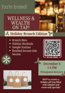 Enjoy delicious brunch bites, holiday adaptogen mocktails, hands-on sampling stations of the Isagenix holistic wellness line, and an approachable look at additional and residual income opportunities. This event offers a significant opportunity for wellness and beauty professionals who want to expand their impact, serve clients more holistically, and explore a wellness-aligned revenue stream that complements their expertise.