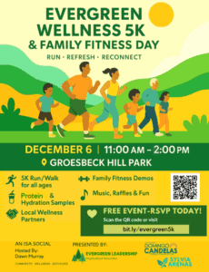 The Evergreen Wellness 5K & Family Fitness Day is a free, family-friendly outdoor event designed to bring together local residents for a morning of health, connection, and fun. Participants will complete a 5K run or walk along the Groesbeck Hill Park trail, followed by family-oriented fitness activities and health booths. The event will feature local wellness organizations, community partners, and volunteers providing light refreshments, packaged snacks, and water stations.