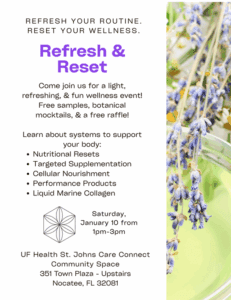 Venue: UF Health St Johns Care Connect – Community Space – 351 Town Plaza – Upstairs – Nocatee, FL 32081