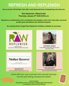 Venue: Raw Replenish – 1542 E. Philadelphia Ave. Gilbertsville, PA 19525
