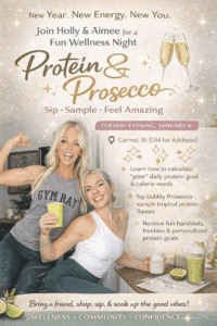 Kick off the New Year with Protein & Prosecco—a fun, feel-good wellness night with Holly & Aimee! You’ll learn how to calculate your personal daily protein and calorie needs, sample delicious tropical protein flavors, and sip bubbly Prosecco while connecting with like-minded women. Guests will also receive fun handouts, personalized protein goals, and a few surprise freebies to take home.